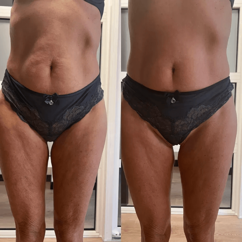 Na één behandeling oogt de huid gladder en steviger, met zichtbaar verfijnde contouren, met name rond de taille, rug en buik.