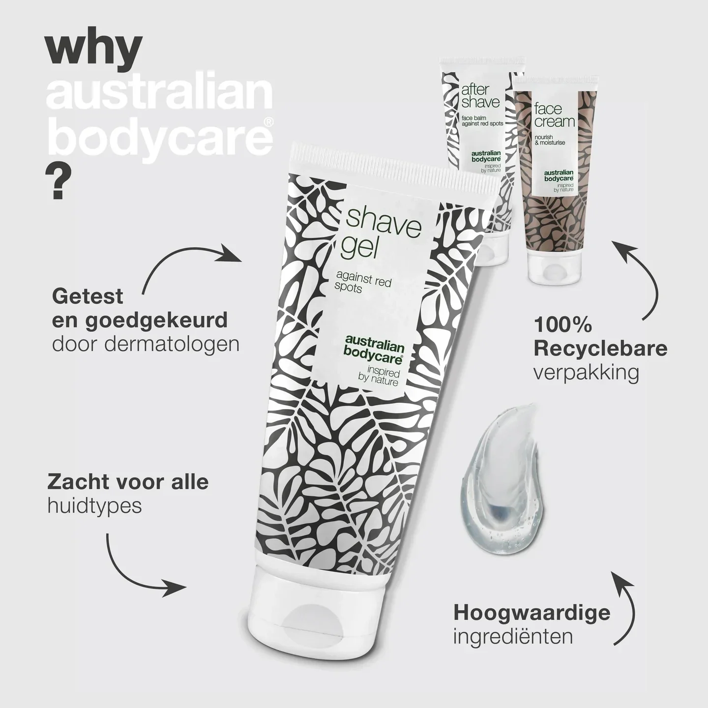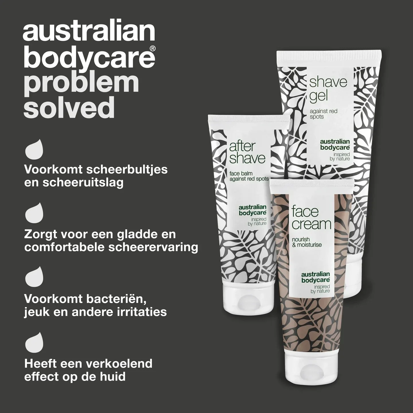 Vergeet niet om je huid na het scheren te verzorgen. Na het scheren staan de poriën van de huid namelijk open en zijn ze gevoelig voor bacteriën en vuil, die zich kunnen ontwikkelen tot rode bultjes en puistjes. Gebruik daarom een gezichtscrème die speciaal bedoeld is voor gebruik na het scheren. De Aftershavecrème in het pakket bevat zowel Tea Tree Olie als Tasmaanse Peper die de huid beschermen en kalmeren.