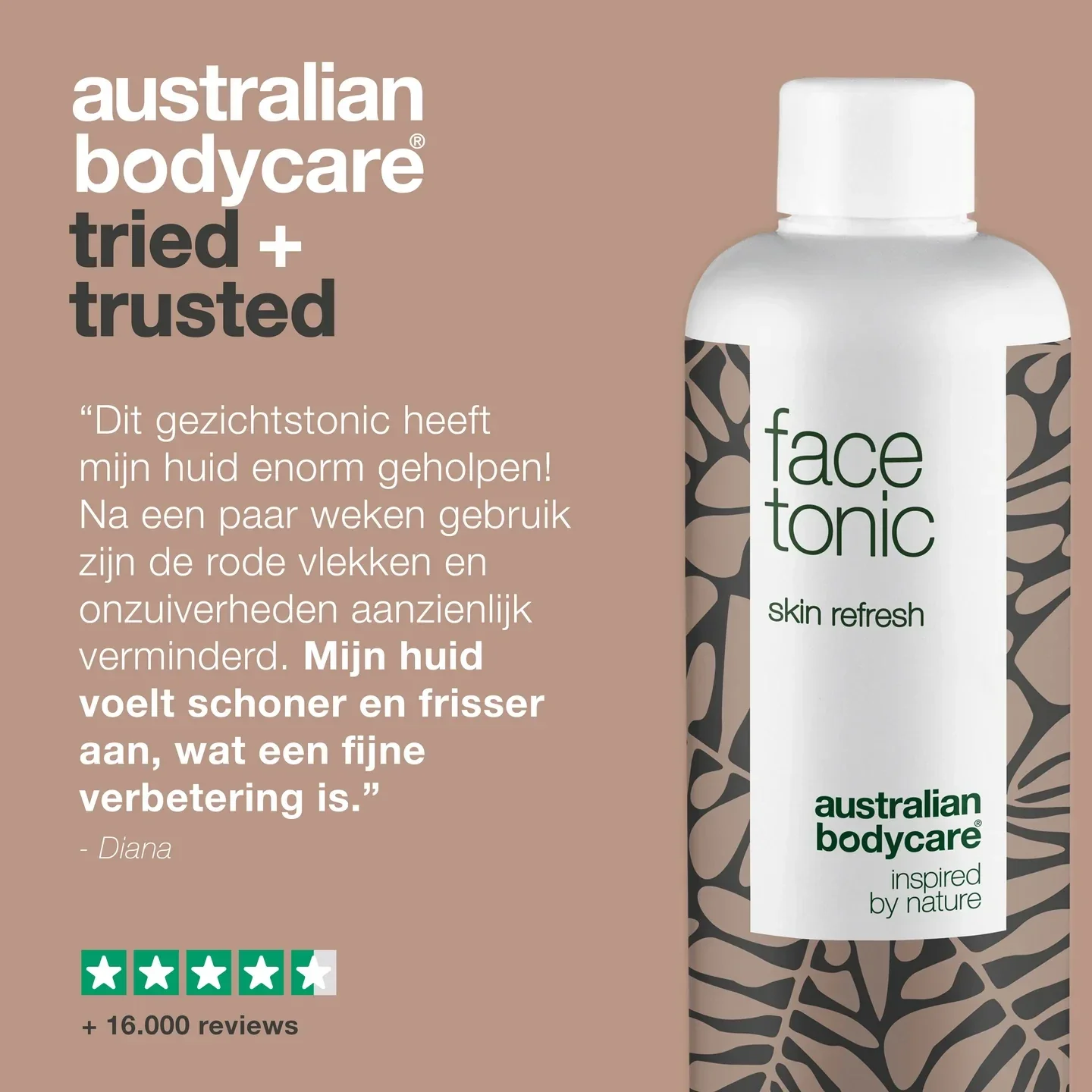 Face Tonic van Australian Bodycare kan door alle huidtypes worden gebruikt en is geschikt voor zowel vrouwen als mannen. De goede huidtonic kan door tieners worden gebruikt die problemen heeft met puistjes, een vette huid en onzuiverheden, maar het is ook geschikt voor een meer rijpe huid, die droog of gevoelig is.