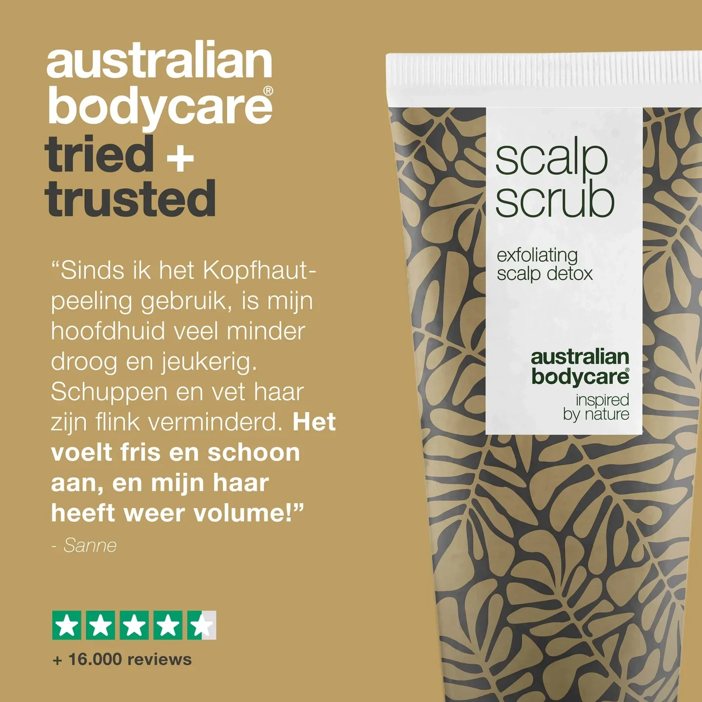 Scalp Scrub van Australian Bodycare heeft het voordeel dat het zowel een doeltreffende scrub voor de hoofdhuid en een shampoo is – in één en hetzelfde product. Daardoor is het gemakkelijk om je haar een paar keer per week te wassen en ook tot in de diepte te exfoliëren. Je kunt de scrub voor de hoofdhuid natuurlijk ook combineren met de andere haarproducten van Australian Bodycare.