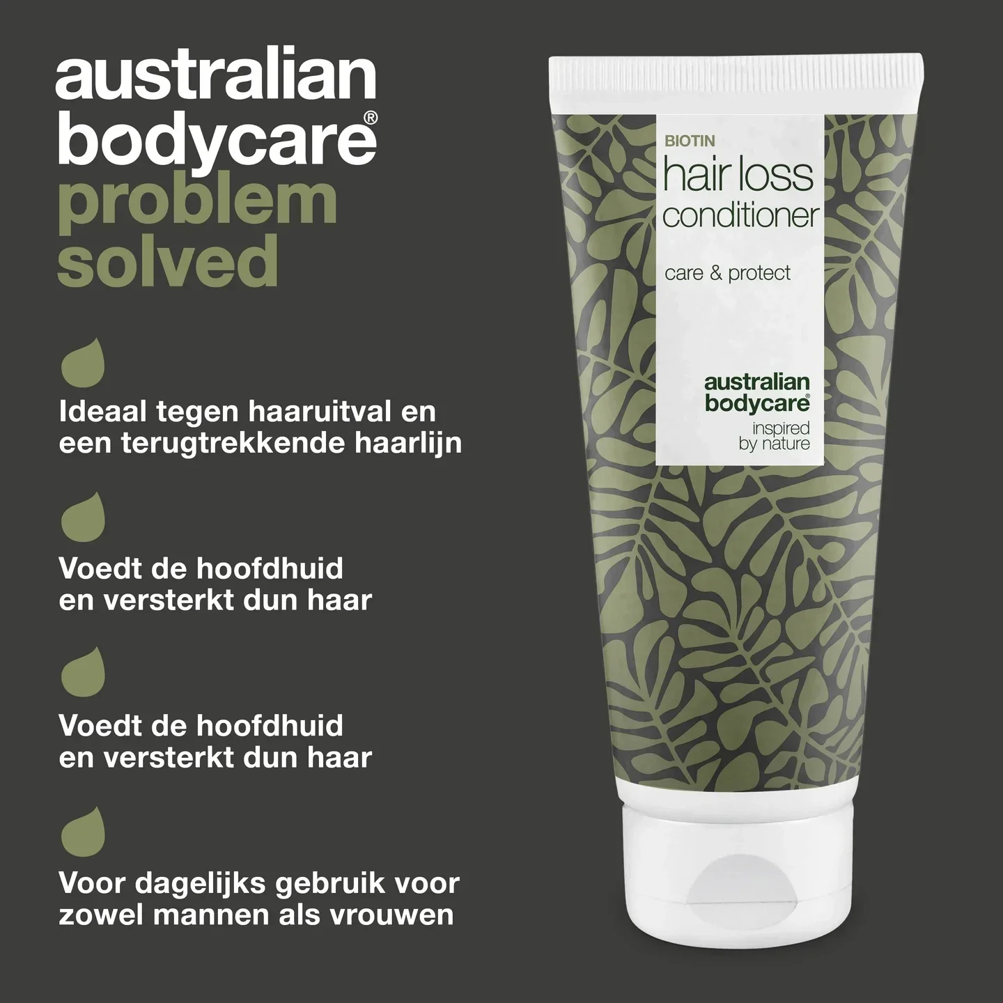 Bij Australian Bodycare ontwikkelen we sinds 1992 probleemoplossende huid- en haarverzorgingsproducten. Onze producten zijn geïnspireerd door de natuur, dermatologisch getest en 100% vegan. Hair Loss Conditioner is speciaal ontworpen om je haar te versterken, voller te laten lijken en optimaal te verzorgen – ongeacht of je man of vrouw bent.